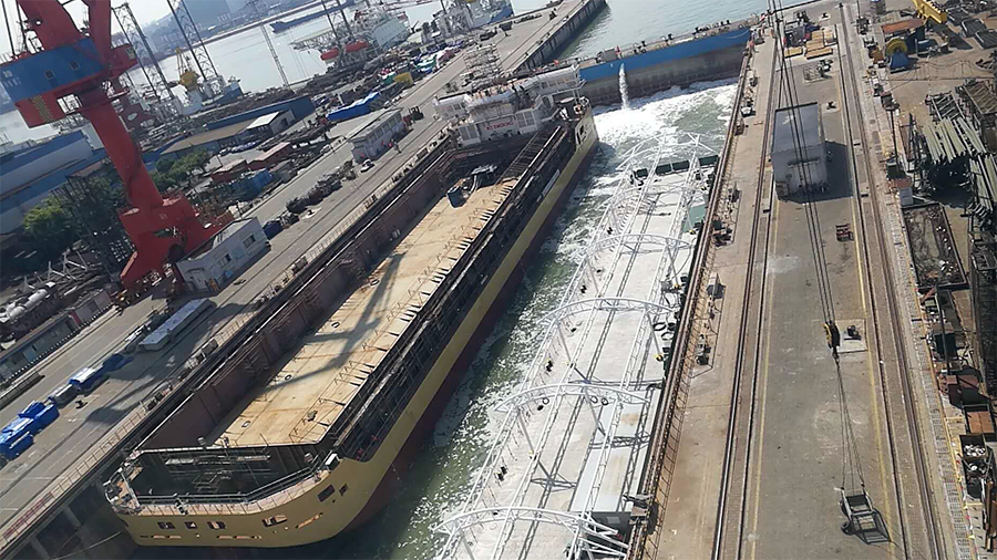 迪拜業(yè)主對(duì)煤炭轉(zhuǎn)運(yùn)系統(tǒng)的環(huán)保、過駁能力、質(zhì)量控制和交付周期等方面都有著嚴(yán)格的要求。為保證項(xiàng)目圓滿完成,哈電國(guó)際與法國(guó)路易達(dá)孚集團(tuán)深度合作的同時(shí),扎實(shí)推進(jìn)哈翔對(duì)過駁系統(tǒng)的各項(xiàng)管理要求,對(duì)設(shè)計(jì)質(zhì)量、建造周期等進(jìn)行嚴(yán)格把控,并參與了船舶建造的工廠檢驗(yàn)。哈電國(guó)際和法國(guó)路易達(dá)孚集團(tuán)共同組成監(jiān)造團(tuán)隊(duì),在廈門船舶重工有限公司船塢內(nèi),對(duì)過駁船只完成水下部分的施工檢驗(yàn),成功完成首批2艘甲板駁船和1艘浮吊船出塢。 |