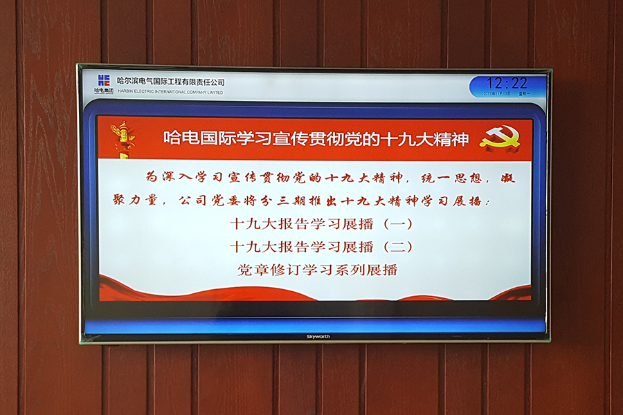 利用公司樓宇電子展播屏分期播放了黨的十九大報(bào)告學(xué)習(xí)展播和黨章修訂學(xué)習(xí)系列展播,讓廣大黨員干部職工能夠隨時(shí)隨地進(jìn)行學(xué)習(xí),使公司上下形成良好、濃郁的學(xué)習(xí)宣傳貫徹黨的十九大精神氛圍。