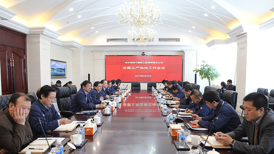 為認(rèn)真貫徹落實(shí)哈電集團(tuán)2017年黨建工作會(huì)議暨反腐倡廉建設(shè)工作會(huì)議精神,2017年2月24日,哈電國(guó)際黨委召開(kāi)全面從嚴(yán)治黨工作會(huì)議。哈電國(guó)際黨委書(shū)記、董事長(zhǎng)郭宇作重要講話,并與各黨支部簽訂《哈電國(guó)際2017年度各黨支部全面從嚴(yán)治黨責(zé)任書(shū)》。會(huì)議由黨委副書(shū)記、副總經(jīng)理、工會(huì)主席張立偉主持。哈電國(guó)際領(lǐng)導(dǎo)班子成員、各支部書(shū)記、各部門(mén)主要領(lǐng)導(dǎo),以及黨群部門(mén)人員參加會(huì)議。