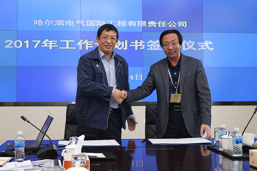 2017年2月24日,哈電國(guó)際召開2017年綜合計(jì)劃工作會(huì)議。哈電國(guó)際董事長(zhǎng)、黨委書記郭宇作重要講話。哈電國(guó)際總經(jīng)理、黨委副書記曲愛民代表公司與職能部門、事業(yè)部代表簽訂《2017年工作計(jì)劃書》。會(huì)議由哈電國(guó)際副總經(jīng)理、黨委副書記張立偉主持。哈電國(guó)際領(lǐng)導(dǎo)班子成員及各部門主要領(lǐng)導(dǎo)參加會(huì)議。