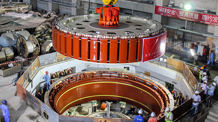 當(dāng)?shù)貢r間2016年10月22日10時,在蘇丹項(xiàng)目業(yè)主和監(jiān)理的共同見證下,哈電國際承建的蘇丹上阿特巴拉4×80MW水電項(xiàng)目首臺機(jī)組(4號機(jī)組)發(fā)電機(jī)轉(zhuǎn)子成功吊入機(jī)坑。這是哈電國際繼2016年8月25日完成轉(zhuǎn)輪四聯(lián)吊之后實(shí)現(xiàn)的又一個關(guān)鍵里程碑節(jié)點(diǎn),標(biāo)志著該項(xiàng)目首臺機(jī)組發(fā)電機(jī)部套主要安裝工作全部完成。