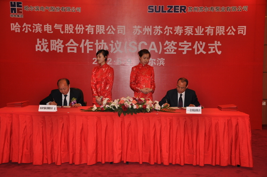 2012年5月9日,哈爾濱電氣股份有限公司同蘇州蘇爾壽泵業(yè)有限公司在華旗飯店舉行了戰(zhàn)略合作協(xié)議簽約儀式;哈電國際同蘇州蘇爾壽泵業(yè)有限公司舉行了優(yōu)先合格供應商簽約儀式。 此次簽約,使哈電國際同蘇爾壽泵業(yè)強強聯(lián)合,對推動雙方的共同發(fā)展、實現(xiàn)雙方共贏,具有深遠的戰(zhàn)略意義。 哈電集團黨委常委、哈電股份總經(jīng)理吳偉章、國際工程副總經(jīng)理董銀柱、動力科貿(mào)總經(jīng)理鄒雪松、汽輪機總會計師李國強、鍋爐廠副總經(jīng)理樊險峰、電站閥門副總經(jīng)濟師賈立君、動裝董事長仲維濱、佳電總經(jīng)理助理劉洪文等出席簽約儀式。