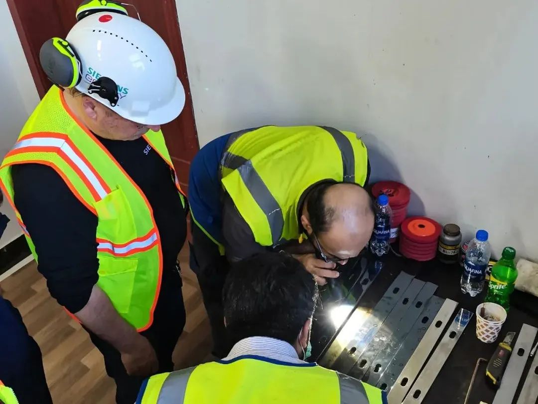 西門子廠代與監(jiān)理正在驗收高壓靶板 在1號機組進行熱態(tài)調(diào)試的同時,項目團隊緊抓2號機組施工進度。鍋爐水壓試驗是鍋爐裝配后以壓力水所進行的強度與密封性試驗。結合1號余熱鍋爐的水壓試驗經(jīng)驗,項目團隊提前與當?shù)卣?、業(yè)主、監(jiān)理及ASME認證人員充分溝通、策劃,將鍋爐外部四大管道的水壓試驗包括在本次2號余熱鍋爐水壓試驗范圍內(nèi),避免對四大管道單獨進行試驗。在積極推動2號余熱鍋爐和四大管道焊接進度的同時,項目團隊嚴格把控焊接質(zhì)量,整體質(zhì)量受到各方一致肯定。在各方全程見證下,2號余熱鍋爐高壓系統(tǒng)、中壓系統(tǒng)和低壓系統(tǒng)水壓試驗均一次成功。 繼3月14日1號燃機點火和3月18日首次并網(wǎng)后,項目團隊又在同日迎來兩大關鍵節(jié)點,極大鼓舞了項目團隊士氣。目前,巴基斯坦新冠疫情形勢嚴峻,當?shù)匕踩蝿莶蝗輼酚^,項目團隊成員大部分已在現(xiàn)場奮戰(zhàn)一年以上。面臨挑戰(zhàn),項目團隊不畏困難,同心協(xié)力,得到巴基斯坦KE業(yè)主的高度評價。接下來,項目團隊將繼續(xù)努力奮戰(zhàn),盡快完成1號機組滿負荷發(fā)電目標,同時全力推動2號機組施工進度。