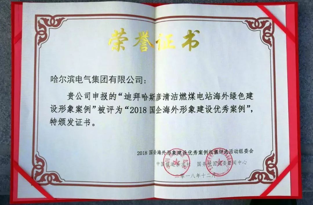 哈電集團(tuán)“迪拜哈斯彥清潔燃煤電站海外綠色建設(shè)形象案例”被評(píng)為“2018國(guó)企海外形象建設(shè)優(yōu)秀案例”。 12月12日,首屆國(guó)有企業(yè)海外形象建設(shè)優(yōu)秀案例評(píng)選活動(dòng)結(jié)果在“2018·中國(guó)企業(yè)海外形象高峰論壇”上揭曉。哈電集團(tuán)“迪拜哈斯彥清潔燃煤電站海外綠色建設(shè)形象案例”被評(píng)為“2018國(guó)企海外形象建設(shè)優(yōu)秀案例”。 據(jù)悉,中國(guó)企業(yè)海外形象高峰論壇由中宣部(國(guó)務(wù)院新聞辦)、國(guó)務(wù)院國(guó)資委指導(dǎo),中國(guó)外文局主辦,中國(guó)報(bào)道雜志社承辦。在中國(guó)改革開放40周年的背景下,集中搜集和展示國(guó)有企業(yè)海外傳播和形象建設(shè)案例,既為進(jìn)一步提升國(guó)有企業(yè)品牌和國(guó)際影響力,助力建設(shè)具有全球競(jìng)爭(zhēng)力的世界一流企業(yè),也是對(duì)我國(guó)對(duì)外開放成就的總結(jié),是對(duì)改革開放40周年的獻(xiàn)禮。為此,中國(guó)外文局中國(guó)報(bào)道雜志社聯(lián)合國(guó)務(wù)院國(guó)資委新聞中心組織開展“國(guó)有企業(yè)海外形象建設(shè)優(yōu)秀案例評(píng)選活動(dòng)”,以"挖掘典型案例 建設(shè)企業(yè)形象 講好中國(guó)故事"為宗旨,根據(jù)各領(lǐng)域企業(yè)在海外經(jīng)營(yíng)過(guò)程中所發(fā)生的故事等進(jìn)行案例征集,為國(guó)有企業(yè)把握最新國(guó)際傳播趨勢(shì)、提升海外傳播和形象建設(shè)水平提供可借鑒的優(yōu)秀案例,激勵(lì)國(guó)有企業(yè)海外形象建設(shè)領(lǐng)域整體發(fā)展。