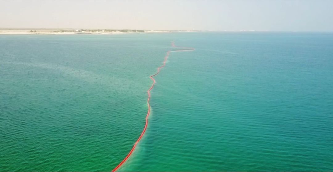 4. 構(gòu)筑橙紅色“防污染警戒線” 為了確保施工區(qū)周邊的珊瑚、水草群落不會(huì)受到疏浚海底絞吸作業(yè)和沉淀池排水所潛在的不利影響,為了保護(hù)這塊海洋動(dòng)植物的圣地,哈電集團(tuán)聯(lián)合國(guó)際知名咨詢公司的環(huán)境專家,經(jīng)過(guò)反復(fù)研究論證,確定了保護(hù)水質(zhì)的最佳方案——“防淤簾防污方案”,構(gòu)筑起橙紅色“防污染警戒線”。 在水工結(jié)構(gòu)開工之前圍設(shè)防淤簾,其主要作用是形成一道防污屏障,用來(lái)阻隔和限制施工區(qū)域內(nèi)攪動(dòng)的泥沙及產(chǎn)生的污染物向施工區(qū)域以外擴(kuò)散,從而確保施工區(qū)域周圍的水體不受污染;同時(shí),防御簾還起到了阻攔海龜、海豚等海洋動(dòng)物誤入施工區(qū)域的作用。從環(huán)保的角度來(lái)講,這些伸展在海面上醒目的橙紅色“防污染警戒線”,傳達(dá)了中國(guó)企業(yè)綠色環(huán)保理念的生態(tài)保護(hù)線。