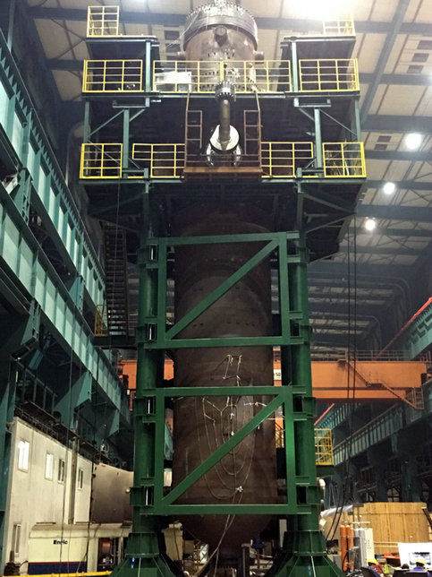 高溫氣冷堆核電站示范工程石島灣2號(hào)蒸汽發(fā)生器 在稍早的9月28日晚21點(diǎn)45分,哈爾濱電氣動(dòng)力裝備有限公司承制的卡拉奇項(xiàng)目2號(hào)機(jī)組(簡(jiǎn)稱K2項(xiàng)目)首臺(tái)核反應(yīng)堆冷卻劑泵(以下簡(jiǎn)稱主泵)全流量試驗(yàn)勝利結(jié)束,為2019年K2項(xiàng)目順利完成工程冷試打下了堅(jiān)實(shí)基礎(chǔ)。 據(jù)了解,卡拉奇2號(hào)機(jī)組為“華龍一號(hào)”海外首堆。 K2項(xiàng)目首臺(tái)核反應(yīng)堆冷卻劑泵全流量試驗(yàn)自9月10日開(kāi)始,K2項(xiàng)目團(tuán)隊(duì)歷經(jīng)19天奮戰(zhàn),夙興夜寐,堅(jiān)持不懈,最終圓滿完成各項(xiàng)試驗(yàn)項(xiàng)目,得到了中核集團(tuán)中原公司和巴基斯坦業(yè)主的認(rèn)可和好評(píng)。在試驗(yàn)過(guò)程中,主泵運(yùn)行穩(wěn)定,無(wú)異常情況,各項(xiàng)關(guān)鍵性能數(shù)據(jù)表現(xiàn)良好。 哈電集團(tuán)為“華龍一號(hào)”主泵量身研制了新型復(fù)合軸承,根據(jù)實(shí)際需求設(shè)計(jì)制造,從根本上提升了“華龍一號(hào)”主泵的運(yùn)行性能,其中自主研制的機(jī)械密封技術(shù)指標(biāo)首次經(jīng)歷了全流量試驗(yàn)的考驗(yàn),達(dá)到同類密封標(biāo)準(zhǔn)的先進(jìn)水平。 “十一”前夕,哈電集團(tuán)連續(xù)兩核電裝備制造技術(shù)取得重大突破,向祖國(guó)69歲華誕獻(xiàn)上厚禮。