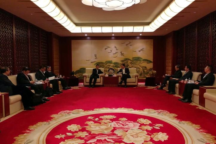 集團(tuán)公司董事長(zhǎng)、黨委書記斯?jié)煞蚺c國(guó)家電投董事長(zhǎng)、黨組書記王炳華等進(jìn)行交流