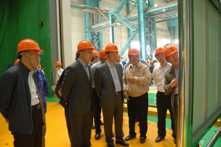 曹培璽等一行在集團(tuán)公司副總經(jīng)理吳偉章陪同下參觀(guān)重裝公司生產(chǎn)現(xiàn)場(chǎng)