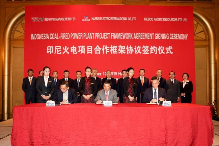 10月12日,哈電集團(tuán)與香港瑞德基金、印尼MEDCO RESOURCES共同簽訂了印尼2臺(tái)1000兆瓦煤電項(xiàng)目總承包及投資合作框架協(xié)議。黑龍江省政協(xié)主席杜宇新、副省長(zhǎng)胡亞楓等領(lǐng)導(dǎo)出席活動(dòng)。哈電集團(tuán)董事長(zhǎng)、黨委書(shū)記鄒磊、哈電國(guó)際公司有關(guān)領(lǐng)導(dǎo),印尼達(dá)尼多煤礦集團(tuán)董事長(zhǎng)紀(jì)輝琦、總監(jiān)Dasa Sutantio等參加了項(xiàng)目簽約儀式。 印尼2臺(tái)1000兆瓦煤電項(xiàng)目是哈電集團(tuán)在海外市場(chǎng)成功開(kāi)發(fā)的首個(gè)1000兆瓦級(jí)煤電機(jī)組EPC項(xiàng)目,該項(xiàng)目也是哈電集團(tuán)首個(gè)采取BOO投資模式的海外項(xiàng)目,哈電集團(tuán)所屬哈電國(guó)際作為EPC總承包商還將負(fù)責(zé)電廠的建設(shè)和運(yùn)營(yíng)。印尼MEDCO RESOURCES是由印尼達(dá)尼多集團(tuán)及Medco Group成立的合資公司。 據(jù)了解,印尼是東南亞的缺電大國(guó),全國(guó)用電普及率僅為56%,電力需求年均增長(zhǎng)10%—15%。近年來(lái),印尼由于迅速發(fā)展的經(jīng)濟(jì)已成為我國(guó)電力企業(yè)開(kāi)拓的重要海外市場(chǎng)。哈電集團(tuán)已經(jīng)在印尼成功建設(shè)了百通1臺(tái)660兆瓦燃煤電站項(xiàng)目,擁有良好的業(yè)績(jī)和EPC總承包工程建設(shè)經(jīng)驗(yàn)。目前,哈電集團(tuán)正在建設(shè)印尼萬(wàn)丹670兆瓦火電EPC工程項(xiàng)目。此次雙方合作,哈電集團(tuán)將憑借高性能的機(jī)組設(shè)備和哈電國(guó)際優(yōu)質(zhì)的工程項(xiàng)目服務(wù),為印尼再添一座精品電站。