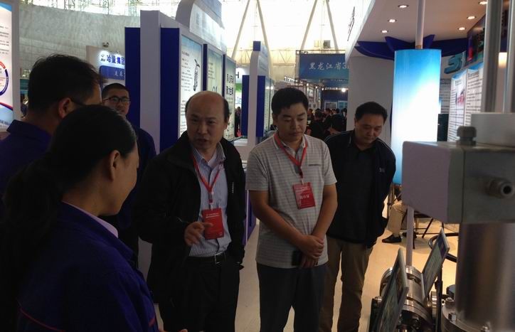 圖為哈電集團副總經(jīng)理苗立杰(右一)向出席展會的領(lǐng)導(dǎo)介紹哈電集團產(chǎn)品