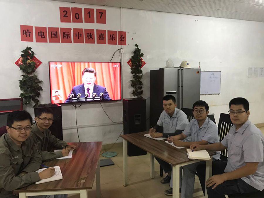 2017年10月18日9時,中國共產(chǎn)黨第十九次全國代表大會在北京人民大會堂隆重開幕。哈電國際黨委高度重視,組織各黨支部黨員和全體職工集中收看了黨的十九大開幕會盛況。 為了做好組織觀看工作,哈電國際黨委按照哈電集團黨委有關(guān)要求,把收聽收看黨的十九大會議盛況作為一項重要的政治任務(wù)進行部署和落實,專門下發(fā)了《哈電國際黨委關(guān)于認(rèn)真組織收聽收看黨的十九大盛況的通知》,要求各黨支部切實增強“四個意識”,認(rèn)真做好收看黨的十九大會議盛況的準(zhǔn)備工作,緊密結(jié)合工作實際,統(tǒng)籌安排好黨的十九大會議盛況的收聽收看、學(xué)習(xí)討論等活動,第一時間了解掌握會議主要精神,迅速把廣大黨員干部職工群眾的思想統(tǒng)一到黨的十九大精神上來,把行動統(tǒng)一到黨中央的決策部署上來,并結(jié)合落實集團三季度經(jīng)濟運行分析會精神,立足崗位,充分發(fā)揮黨支部的戰(zhàn)斗堡壘作用和黨員的先鋒模范作用,以實際業(yè)績向黨的十九大獻禮。 在觀看過程中,哈電國際各黨支部采取多種形式組織國內(nèi)和國外工程現(xiàn)場黨員和廣大職工同步收看了大會盛況,并積極營造了昂揚向上、喜慶熱烈、文明和諧的濃厚氛圍。