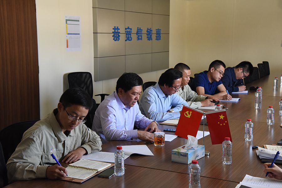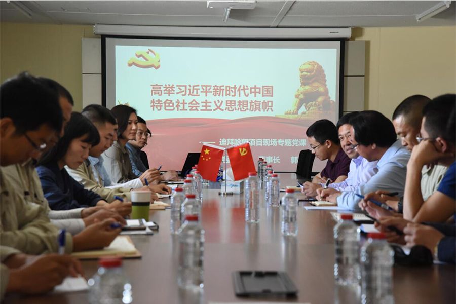 為傳達(dá)貫徹黨的十九大精神,哈電國(guó)際黨委書(shū)記、董事長(zhǎng)郭宇在參加迪拜哈翔項(xiàng)目現(xiàn)場(chǎng)月度高層會(huì)議期間,于2017年10月25日圍繞“高舉習(xí)近平新時(shí)代中國(guó)特色社會(huì)主義思想旗幟,不忘初心,牢記使命,”為迪拜哈翔項(xiàng)目現(xiàn)場(chǎng)全體黨員干部講了專題黨課。 郭宇在黨課中結(jié)合黨的十九大勝利召開(kāi)以來(lái)對(duì)十九大報(bào)告學(xué)習(xí)的心得體會(huì),認(rèn)真分析講解了十九大報(bào)告的主要內(nèi)容,重點(diǎn)闡述了新時(shí)代、新使命、新思想、新征程的深刻內(nèi)涵,并與現(xiàn)場(chǎng)黨員舉行深入座談,同時(shí)對(duì)學(xué)習(xí)宣傳貫徹黨的十九大會(huì)議精神提出了意見(jiàn)和要求。