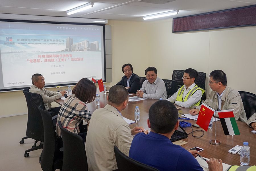 2017年4月26日,哈電國(guó)際黨委書記、董事長(zhǎng)郭宇借參加迪拜哈翔項(xiàng)目高層會(huì)議之機(jī),認(rèn)真落實(shí)形勢(shì)任務(wù)教育“走基層,進(jìn)班組(工地)”活動(dòng),到哈翔項(xiàng)目現(xiàn)場(chǎng)對(duì)黨員和入黨積極分子進(jìn)行黨建教育。 郭宇傳達(dá)學(xué)習(xí)了《中共中央辦公廳印發(fā)< 關(guān)于推進(jìn)“兩學(xué)一做”學(xué)習(xí)教育常態(tài)化制度化的意見>的通知》和《中共中央辦公廳關(guān)于轉(zhuǎn)發(fā)中央組織部、國(guó)務(wù)院國(guó)資委黨委< 中央企業(yè)黨建工作責(zé)任制實(shí)施辦法>的通知》精神,并對(duì)現(xiàn)場(chǎng)黨支部建設(shè)提出了要求。郭宇指出,2017年是哈電國(guó)際的黨建工作年,要舉全公司之力徹底深入地抓好黨建工作,尤其是現(xiàn)場(chǎng)黨支部建設(shè),要增強(qiáng)黨支部的凝聚力和戰(zhàn)斗力,充分發(fā)揮黨員的先鋒模范作用,黨員干部的示范作用,培養(yǎng)能打硬仗的隊(duì)伍。郭宇強(qiáng)調(diào),隨著迪拜哈翔項(xiàng)目現(xiàn)場(chǎng)黨員人數(shù)的增加,要盡快建立現(xiàn)場(chǎng)臨時(shí)黨支部,定期組織黨員和積極分子學(xué)習(xí)黨中央的重要指示精神,將黨的活動(dòng)與業(yè)務(wù)活動(dòng)有機(jī)地結(jié)合起來(lái),以支部黨建工作促進(jìn)項(xiàng)目的順利執(zhí)行。 |