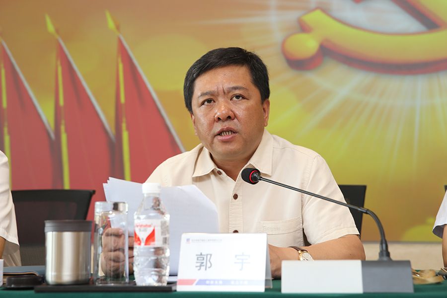 郭宇作重要講話 d 郭宇在講話中分析了黨建工作的形勢和存在的不足,對下一步黨建工作作出部署。郭宇指出,2017年是國務(wù)院國資委推進(jìn)中央企業(yè)黨建工作落實年,也是哈電集團(tuán)公司黨建工作深化年,更是哈電國際黨建工作的攻堅年。哈電國際黨委決定,從現(xiàn)在開始,為期一年的時間,作為哈電國際的黨建工作年。各黨支部要以此次集團(tuán)公司對哈電國際進(jìn)行的專項巡視為契機,以問題為導(dǎo)向,深挖問題源頭,狠抓問題整改,舉一反三,以點帶面,確保從根源上解決問題,要在加強黨委主體責(zé)任落實,加強領(lǐng)導(dǎo)班子建設(shè)、黨員干部隊伍建設(shè)和基層黨支部建設(shè),建立健全規(guī)章制度等方面工作上下功夫,全面推動哈電國際黨建工作上水平、上臺階,開創(chuàng)哈電國際黨建工作新局面。 郭宇在部署下一步哈電國際黨建工作中指出,要深入貫徹落實黨的十八屆歷次會議和習(xí)近平總書記系列重要講話精神,以即將召開的黨的十九大會議精神為指引,緊緊圍繞黨中央的決策部署和哈電集團(tuán)公司的重要指示,突出堅持黨要管黨、從嚴(yán)治黨的總體要求。圍繞一個中心、發(fā)揮三個作用、推進(jìn)三個融合、做到四個合格,以黨建促發(fā)展、以發(fā)展強黨建,團(tuán)結(jié)帶領(lǐng)廣大干部職工凝聚共識、奮力前行,為實現(xiàn)哈電國際轉(zhuǎn)型發(fā)展而努力奮斗。