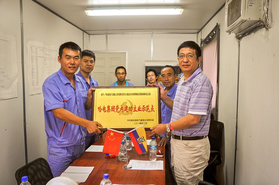 厄瓜多爾當(dāng)?shù)貢r(shí)間2014年8月8日,哈電國(guó)際公司黨委書記曲愛民到厄瓜多爾埃斯梅拉達(dá)二期熱電現(xiàn)場(chǎng)檢查指導(dǎo)工作,并為評(píng)為“哈電集團(tuán)黨內(nèi)建功立業(yè)示范點(diǎn)”的埃斯梅拉達(dá)熱電現(xiàn)場(chǎng)黨支部授牌。