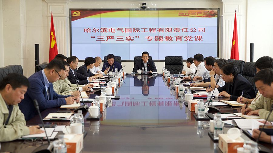 按照中央統(tǒng)一部署和哈電集團開展“三嚴三實”專題教育安排,2015年5月29日,哈電國際公司召開“三嚴三實”專題教育動員會。會后,哈電國際公司黨委書記曲愛民作了題為《為人為政之根本,干事創(chuàng)業(yè)之要害,正心修身之守則,以從嚴的精神求實的態(tài)度開展“三嚴三實”專題教育》的專題教育黨課;哈電國際公司董事長、總經(jīng)理郭宇作了題為《認真學習,深刻領會,立足企業(yè),著眼發(fā)展,扎實踐行“三嚴三實”,全面推進公司再上新臺階》的專題教育黨課。公司黨委副書記張立偉主持會議并傳達了哈電集團董事長、黨委書記鄒磊“三嚴三實”專題教育講話精神。哈電國際公司副處級及以上領導干部參加了會議。