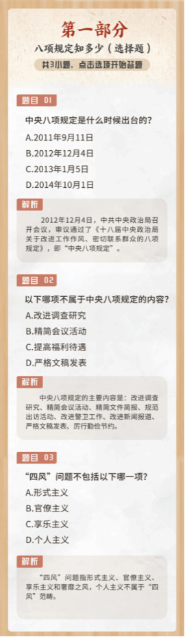 學(xué)習(xí)教育|@黨員干部!測測你對(duì)中央八項(xiàng)規(guī)定了解多少?